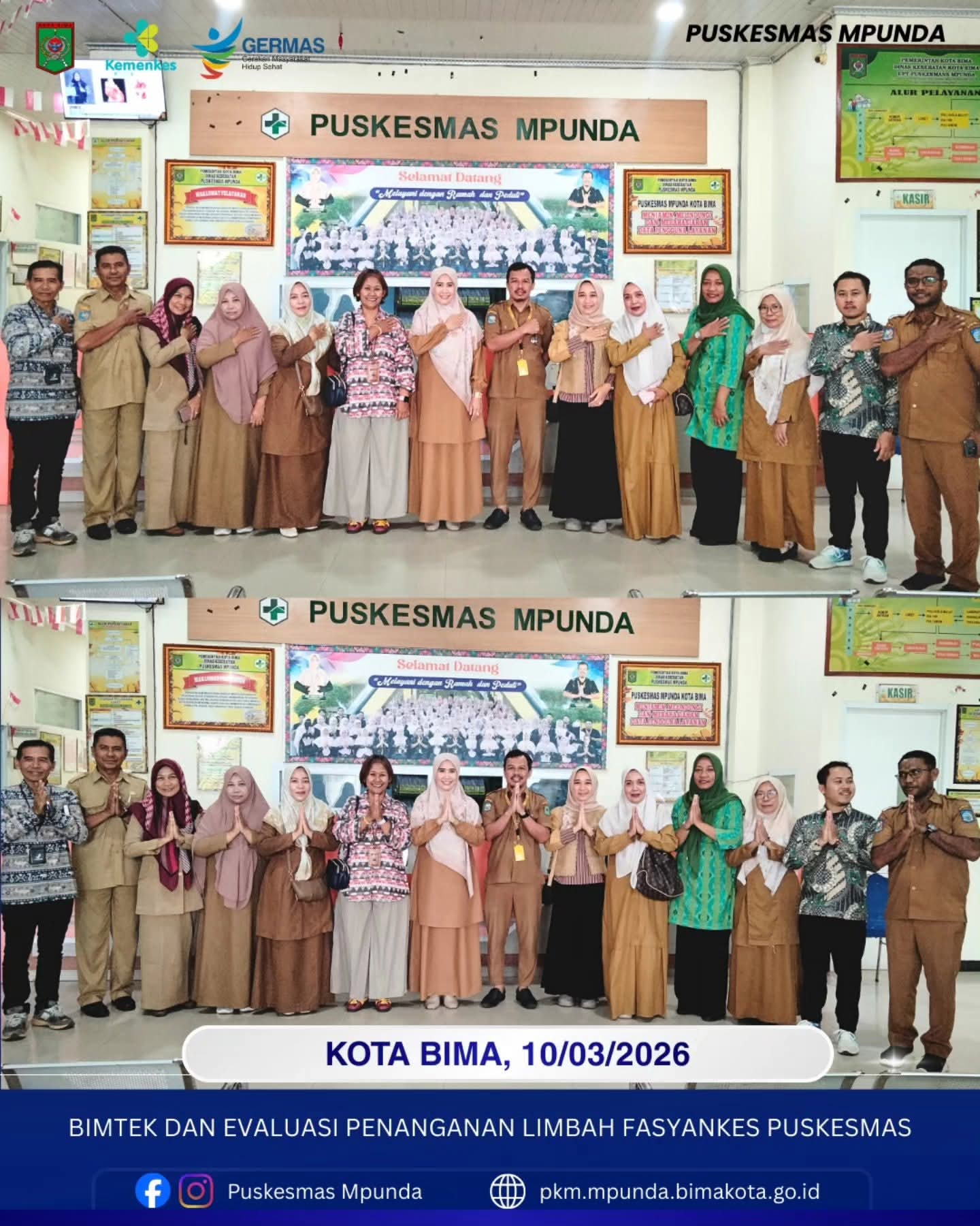 Kepala Puskesmas Mpunda, Bdn. Suharti, SST, didampingi Kasubag TU Abdullah, SKM bersama tim Kesling Puskesmas Mpunda mengikuti kegiatan Bimbingan Teknis (Bimtek) dan evaluasi penanganan limbah fasilitas pelayanan kesehatan (fasyankes) yang dilaksanakan oleh tim dari Dinas Kesehatan Provinsi NTB.