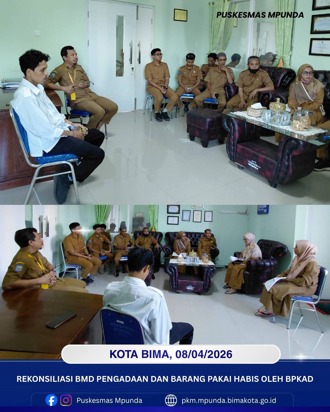 Puskesmas Mpunda menerima kunjungan dari Badan Pengelolaan Keuangan dan Aset Daerah (BPKAD) Kota Bima dalam rangka pelaksanaan kegiatan Rekonsiliasi Barang Milik Daerah (BMD) pengadaan tahun 2025 serta barang pakai habis.