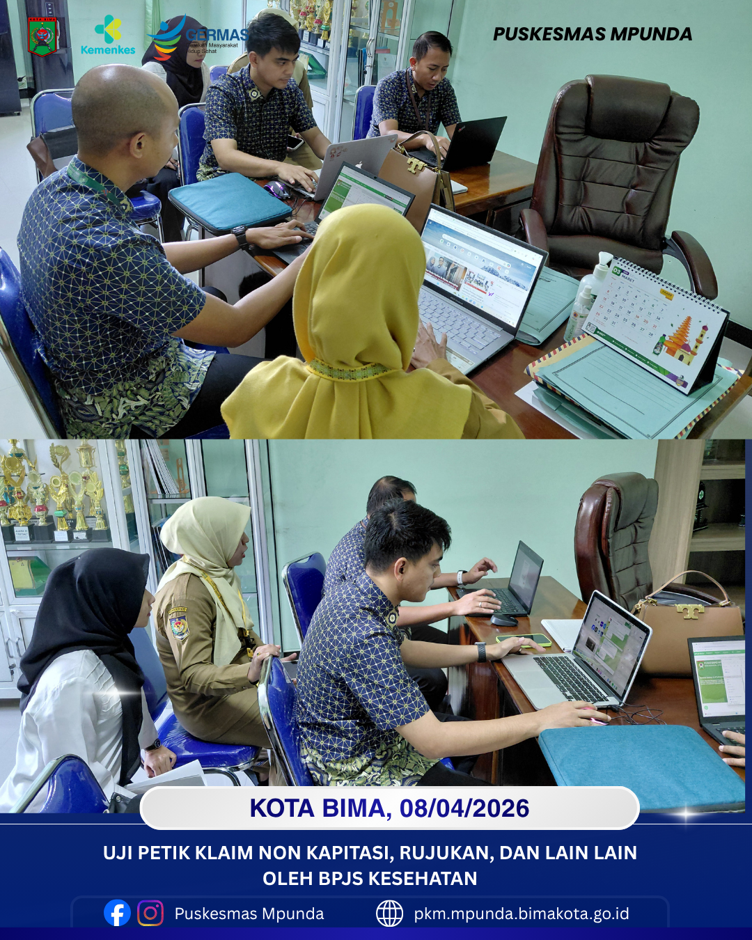 Puskesmas Mpunda menerima kunjungan dari BPJS Kesehatan dalam rangka pelaksanaan uji petik klaim non kapitasi, rujukan, dan layanan lainnya. Kegiatan ini merupakan bagian dari upaya untuk memastikan kesesuaian proses klaim serta peningkatan kualitas administrasi pelayanan kesehatan.