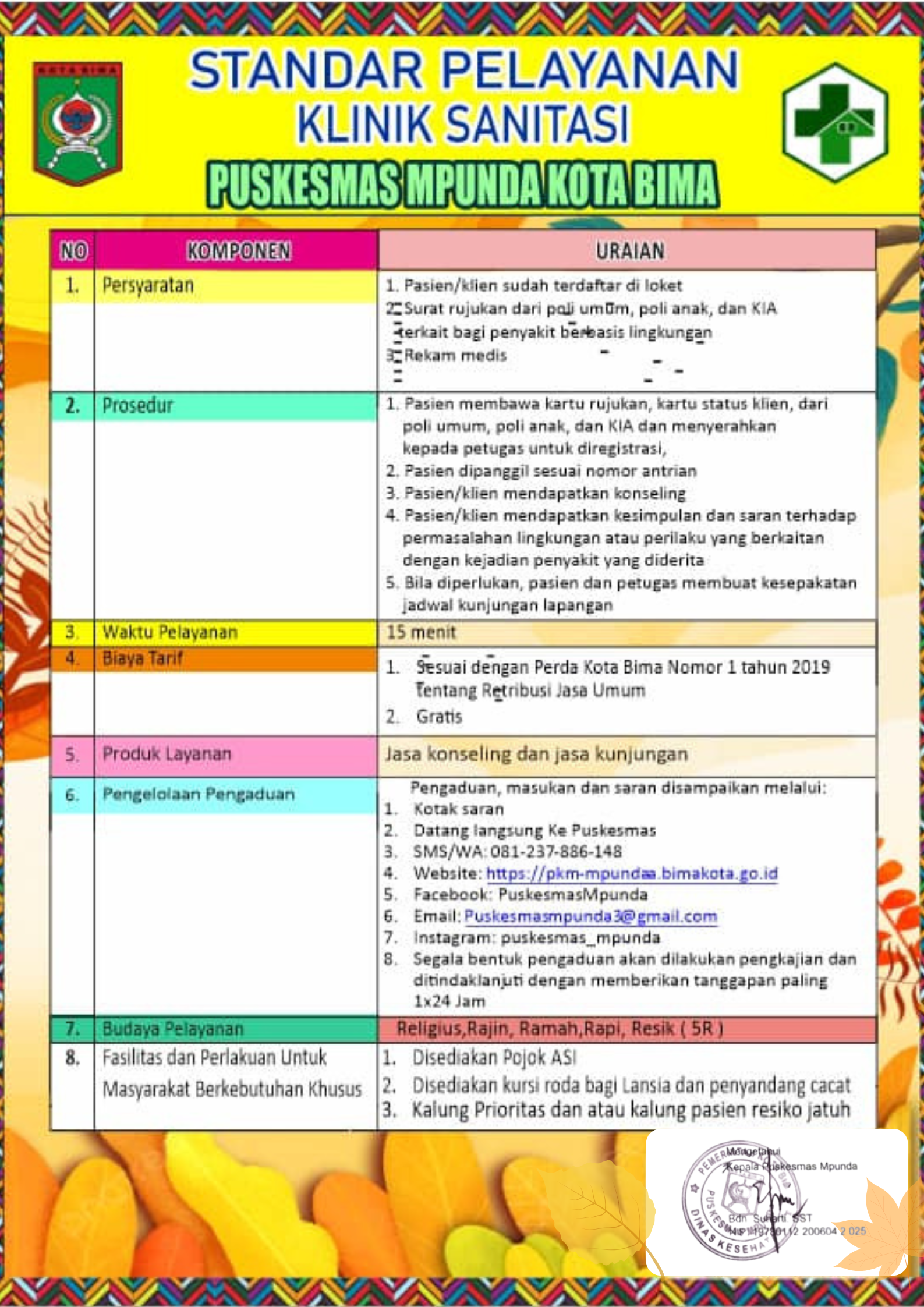 2. Pengumuman / STANDAR PELAYANAN KLINIK SANITASI PUSKESMAS MPUNDA