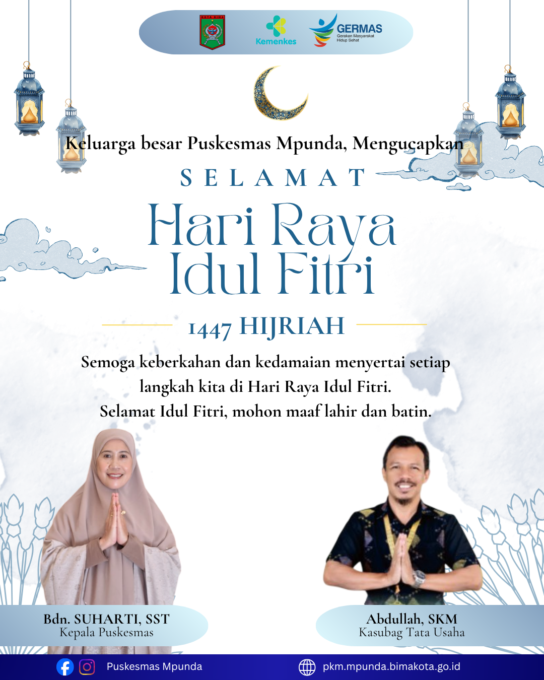Kepala Puskesmas Mpunda, Bdn. Suharti, SST, Kasubag TU Abdullah, SKM, serta seluruh keluarga besar Puskesmas Mpunda mengucapkan:
